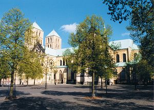 . Johann Conrad Schlauns umgewandelt zur Ausführung kamen. Die 1748 datierte Planung Schlauns sah neben der regelmäßigen Pflanzung von mehr als 200 Linden und Ulmen ..... im 19. und frühen 20. Jahrhundert angefertigte Stadtpläne zeigen jeden falls den Domplatz in ein dichtes Netz aus regelmäßigen Baumpflanzungen eingebunden.